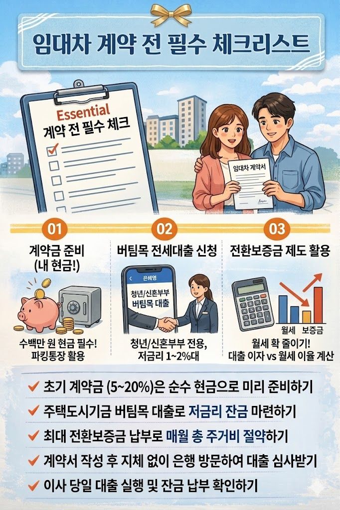 "축하합니다. 임대차 계약을 체결하러 오시기 바랍니다." 기나긴 예비자 대기 끝에, 혹은 서류 심사를 무사히 마치고 이 문자를 받았을 때의 기쁨은 이루 말할 수 없습니다. 하지만 그 기쁨도 잠시, 계약 안내문에 적힌 '보증금' 액수를 보는 순간 현실적인 고민이 뇌리를 스칩니다. "당장 수천만 원이 없는데, 대출은 어떻게 받지?"